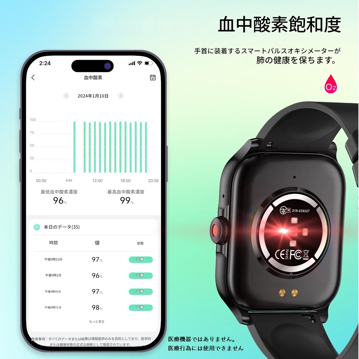 健康管理 運動記録 IP67防水 湯気・微細な水分に弱いのでサウナ/水泳等は避けてください