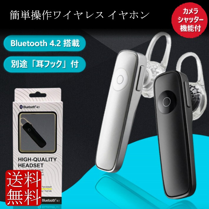 ■商品詳細■ 商品名:ワイヤレス Bluetooth4.2イヤホン 重さ:約6g カラー:ホワイト・黒2色 電波伝送方式:Bluetooth V4.2 自動接続可 待機時間:最大100時間 連続使用時間:最大4時間 充電所要時間:約2時間 伝送(受信)距離:約10M再起動可 (※環境によって誤差あり) 対応機種:スマホ・Android・Bluetooth 音声機能搭載可能機種全般 付属品:中国語・英語版クイックスタート取説・USB充電ケーブル・耳フック1個 保証期間はメーカー希望期間30日間になります。