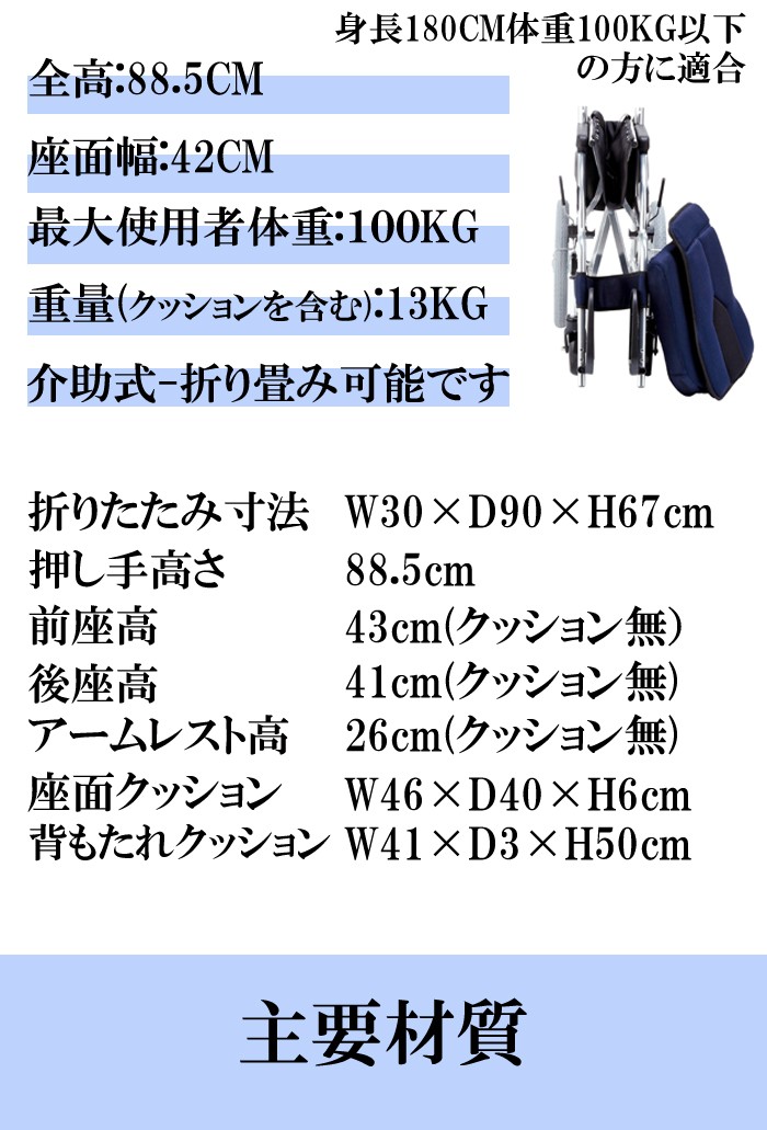 座面幅42cm・サイズ:W63(30)×D97(90)×H88.5(67)cm( )折りたたみ時