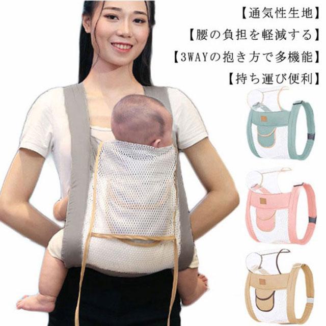 だっこひも 抱っこ紐 新生児 おんぶ紐 ベビーキャリア スリング 通気性抜群 軽量 前抱き ヒップシート 収納 メッシュ ベルト スリング お出かけ用