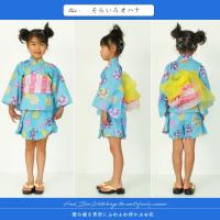 ドレス浴衣 兵児帯 2点セット キッズ 子供 女の子 甚平 寝間着 パジャマ ブルー 青 ウサギ 花火大会 祭り