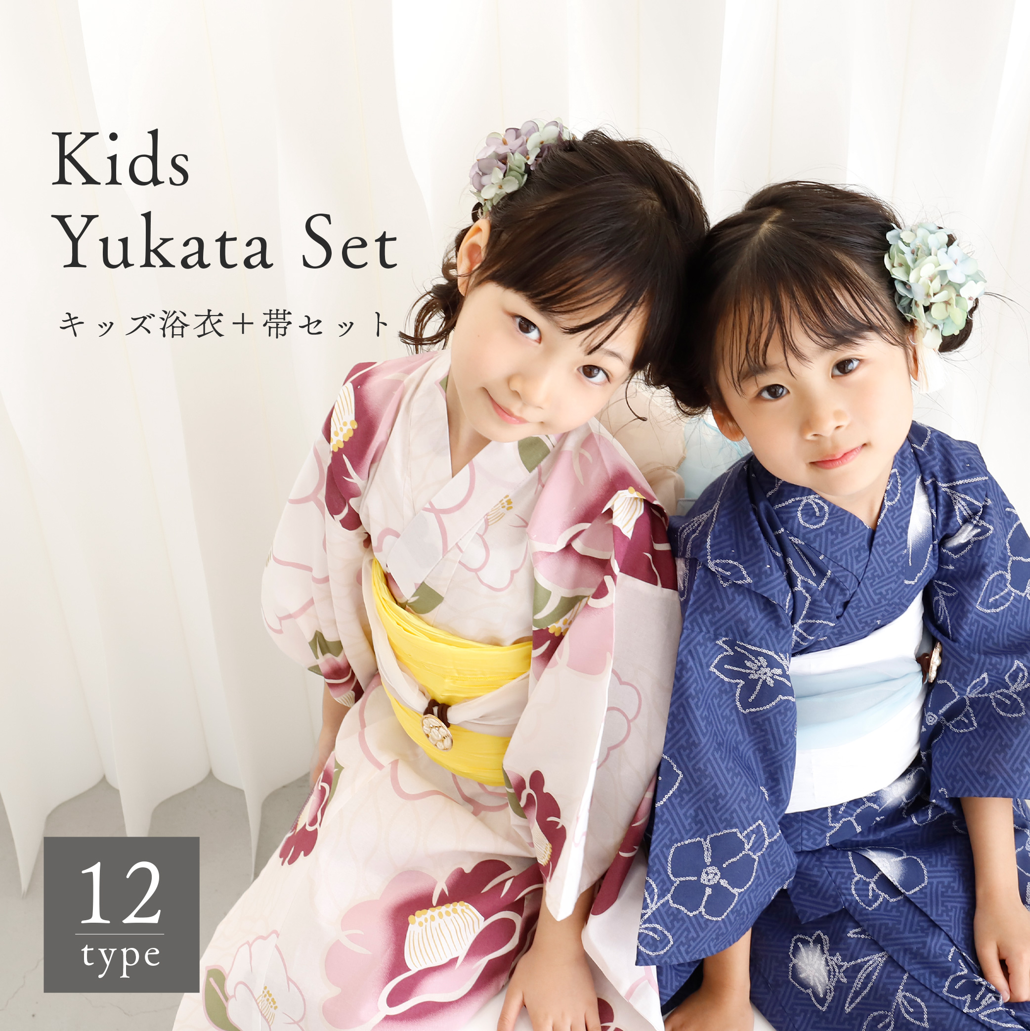浴衣 子供 子ども 兵児帯 2点 セット 簡単着付け 花柄 かわいい おしゃれ モダン ゆかた 女の子 子供浴衣セット 綿 プチプラ 送料無料 レトロ 白 ピンク 水色 紺