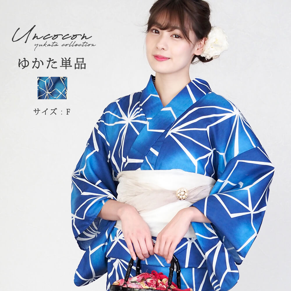 浴衣 レディース 女性浴衣 単品 浴衣単品 仕立て上がり 綿 浴衣レディース 女性用 麻の葉 ブルー 青 ぼかし グラデーション