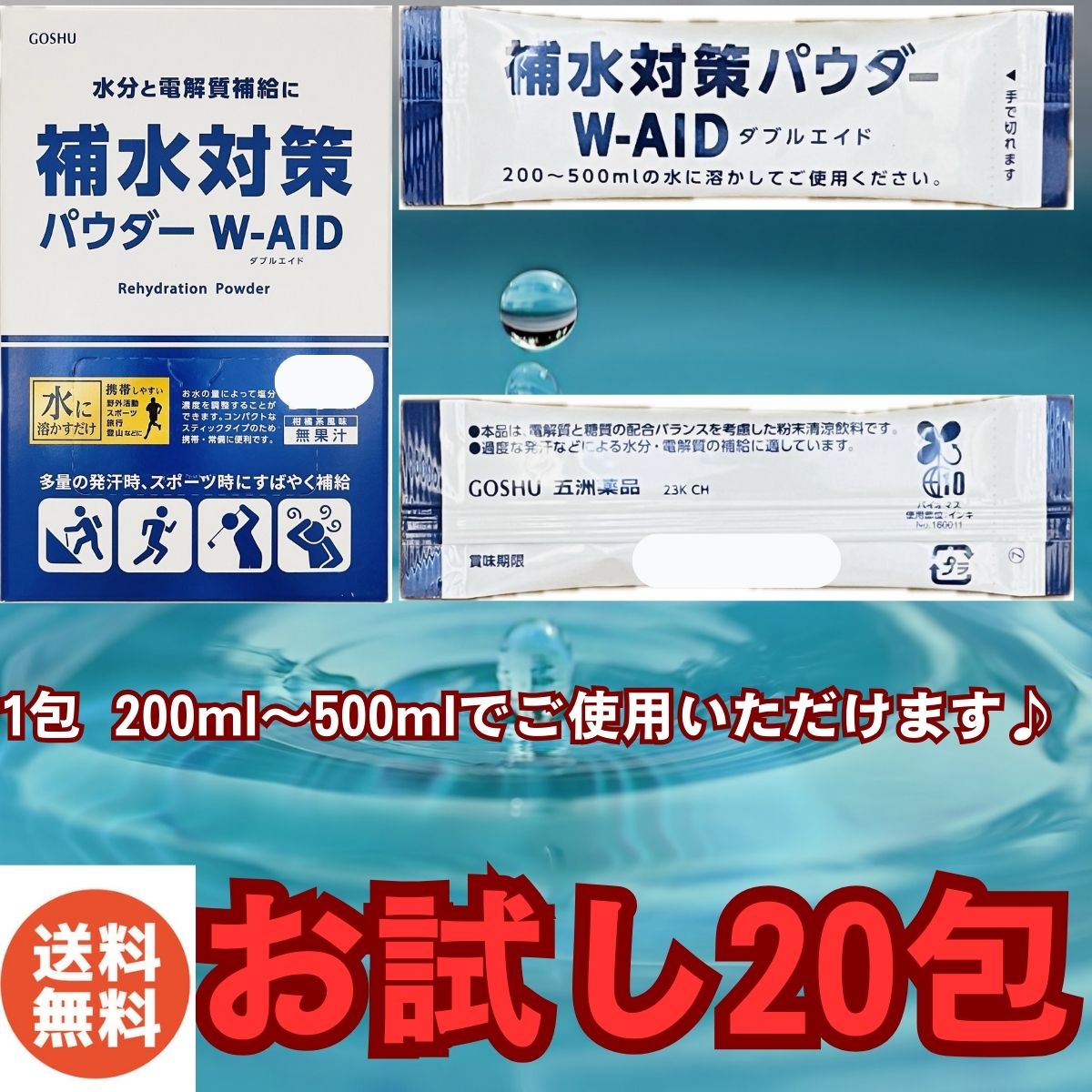 補水液 パウダー 経口補水液 粉末 5g×20包 補水対策 ブドウ糖 スポーツドリンク バラ W-AID 五洲薬品