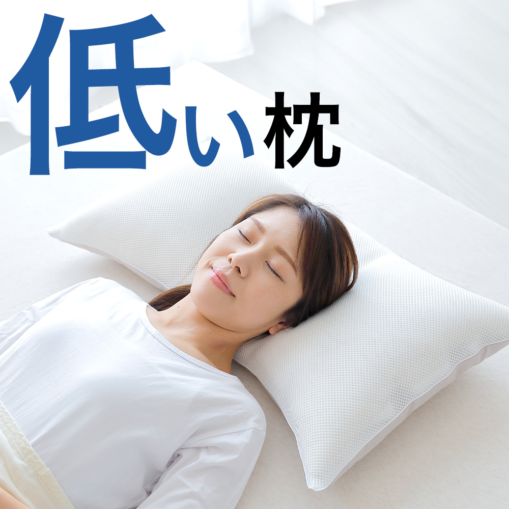 低い枕であなたも"健康睡眠"とにかく低い枕は、身体に負担をかけない「健康睡眠」のことを考えてつくられた枕。