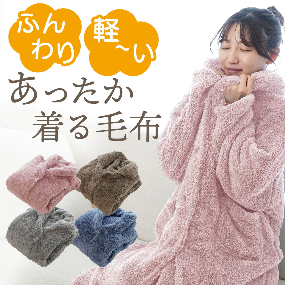 寒い冬もそっと体を包み込んでくれる。リビングでも寝室でも寒さ対策に便利な着る毛布。まるで毛布に包まれているような心地よさ。
