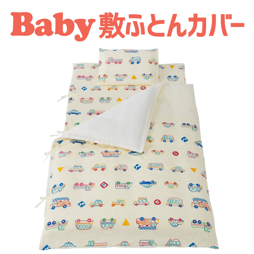 汗っかきの赤ちゃんにぴったりの吸水性、発散性にすぐれたガーゼ生地を使用した敷き布団カバーです。 大人気のくるまパークから新柄の登場です。 お布団を中に入れ、3ヶ所のヒモで結んでご使用いただきます。 |