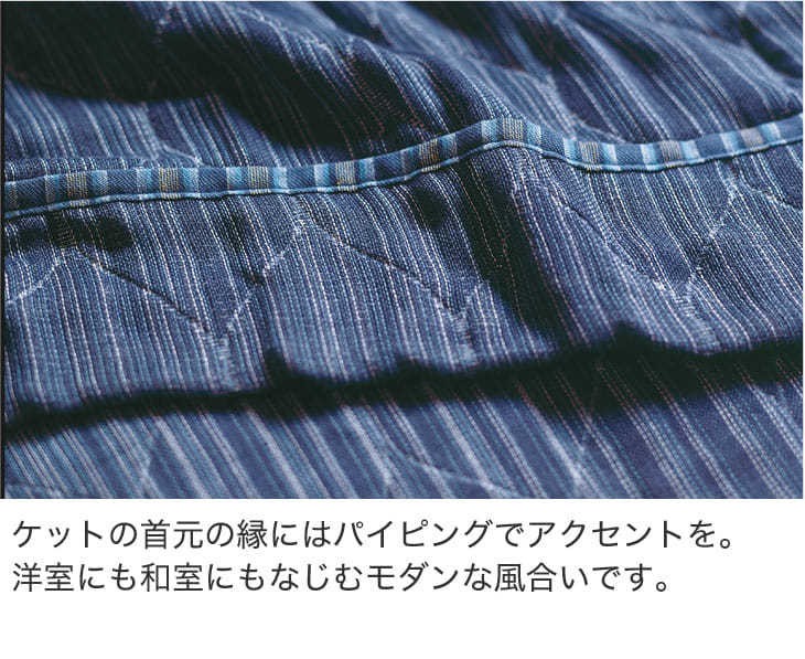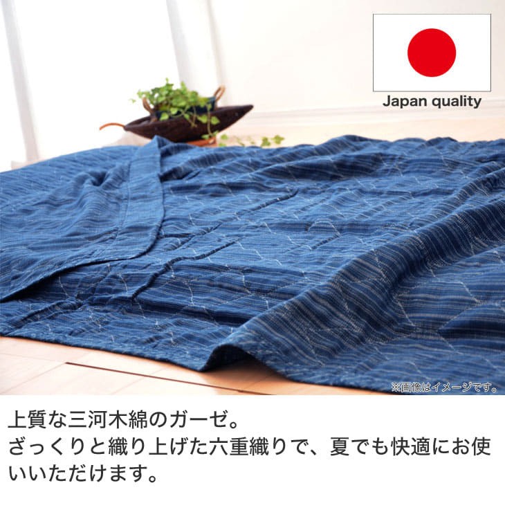 | 日本の伝統的な六重織りの三河木綿を使ったガーゼケットです。 ざっくりとした織りの生地の間には十分な空気層があり、吸収性・放湿性に優れています。 夏の暑さや冷房対策としてはもちろん、冬の湿度調整にも役立ち、オールシーズンお使いいただけます。 |