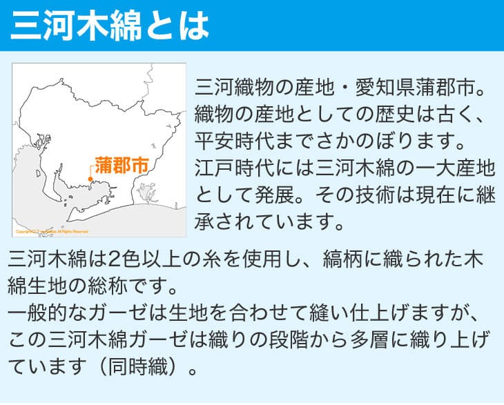 | ご家庭で手洗いできます。 ※三河木綿には毛羽落ちが見られますので、手洗いをお勧めします。 |