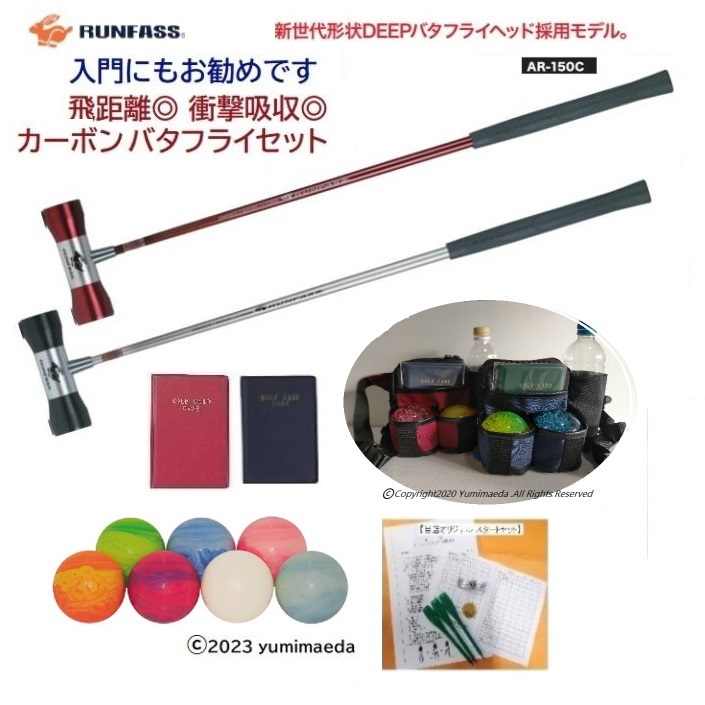 マレットゴルフセット スティック 5点 ランファス 飛距離重視 軽量 カーボン ボール ポーチ スコアカードケース