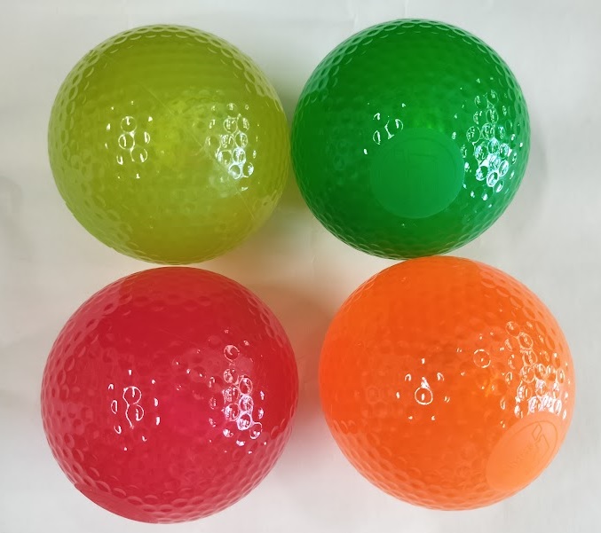 【特徴】 人気のスケルトン・ディンプルボール。 表面はゴルフボールのように凸凹しています。(芝コース・里山コース向き)
