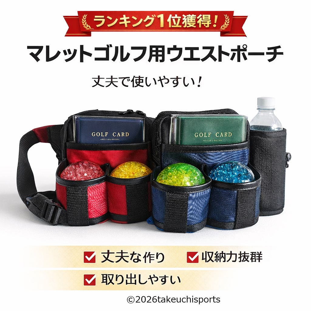 マレットゴルフ 用品 ボール2個 & スコアカード &ペットボトル 収納 ウエストポーチ ベルト付き