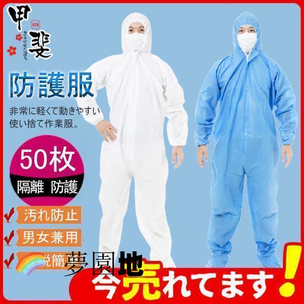 防護服 使い捨て 不織布 隔離服 撥水 つなぎ ワークウエア 作業着 フード付き 50枚 高品質 保護服 業務用 作業服 飛沫対策 汚れ防止 防塵