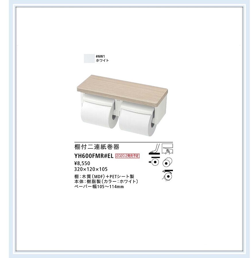 TOTO 棚付2連紙巻器 YH600FMR#NW1 芯ありペーパー用 ホワイト色