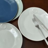 ロゴが中央上部にデザインされたサラダプレート。料理を盛り付けしてもロゴが見えるデザインなので、いつもの食事を更に楽しくしてくれます。サラダ皿としてはもちろん、朝食のワンプレートとしてもお使いいただけます。程よい大きさなので、小さめのテーブルでもしっかり活躍。リムが立ち上がっているので、持ち運びの際にお料理が滑りにくく、使いやすくなっています。色は、ホワイト、ターコイズ、デニム、グレーの4色からお選びいただけます。