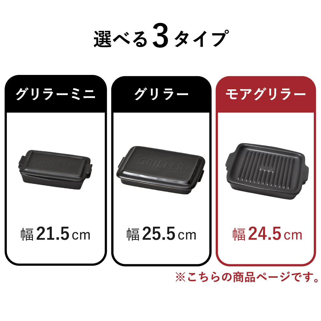 「洗い物が少ない簡単調理をしたいけど、栄養もしっかり取りたい。」そんなわがままを叶えてくれる魔法の道具・TOOLSのグリラー(GRILLER)です。オーブンや電子レンジはもちろん、ガスコンロの魚焼きグリルにも入りやすいように、薄型に作られています。同時進行で他の調理作業ができるので、効率よくお料理したい方にピッタリ。また、直火にも対応するなど、様々な熱源に対応しているので、幅広い調理方法をお楽しみいただけます。陶器ならではの遠赤外線が、食材をほっこりおいしく仕上げてくれます。フタの有無でも、作れる料理のレパートリーが広がります。フタをして調理することで、全体から食材にじっくりと熱が伝わり、おいしい蒸し焼き料理を。フタを外して調理することで、しっかりと焼き目が付くので、キッシュやグラタンに。「グリラーミニ(GRILLER MINI)」「グリラー(GRILLER)」「モアグリラー(More GRILLER)」の3タイプからサイズ感や用途に合わせて、お好みでお選びいただけます。TOOLSのグリラー(GRILLER)シリーズで、より快適なキッチンライフを。