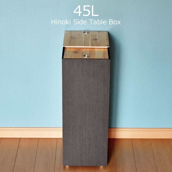 ゴミ箱 おしゃれ 45リットル キッチン用 分別 大型 スリム リビング用 蓋付き フタ付き ダストボックス ひのき張りサイドテーブルBOX 45L