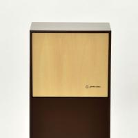 美しい木目と落ち着いたカラーの組み合わせがスタイリッシュなスイング式ゴミ箱「DOORS mini(ドアーズ ミニ)」です。本体のカラーは豊富で、色々なインテリアに馴染みます。前面のスイング扉にはシナ材が使われていて木のぬくもりが感じられる優しい肌触りです。フタを開ける手間がかからないので片手で簡単にゴミ捨てができます。上部にフタがないことで天板にはちょっとした小物も置くことができます。また、表面からゴミ袋が見えることもなく生活感も出しません。四角いデザインは無駄なスペースを作らずコーナーにもすっきり収まります。職人がひとつひとつ丁寧に仕上げた、安心の日本製です。