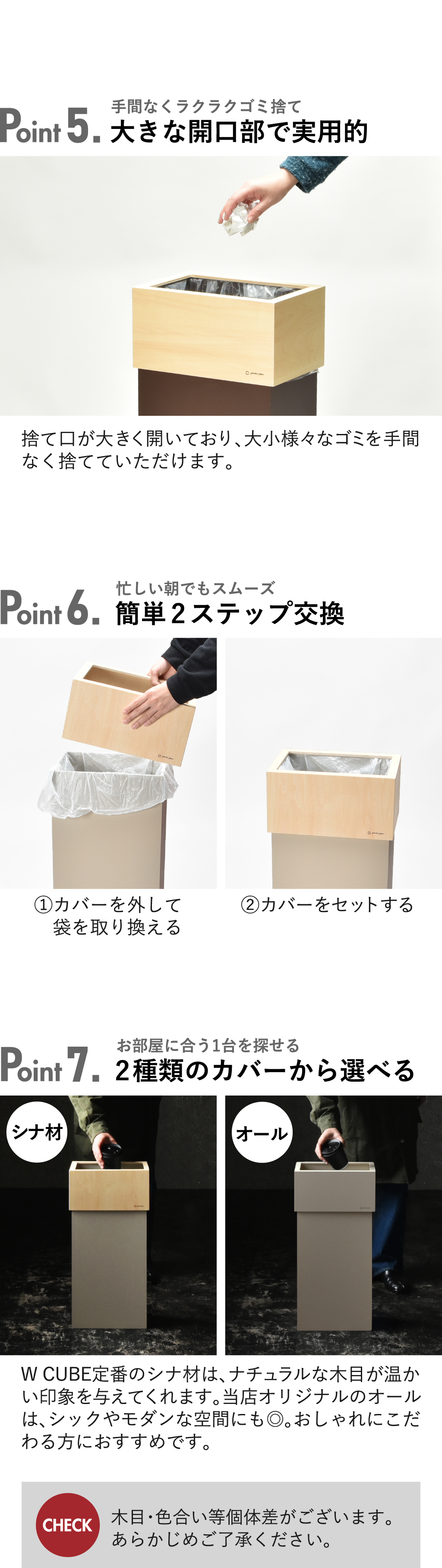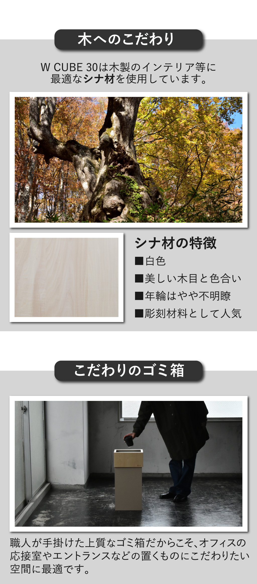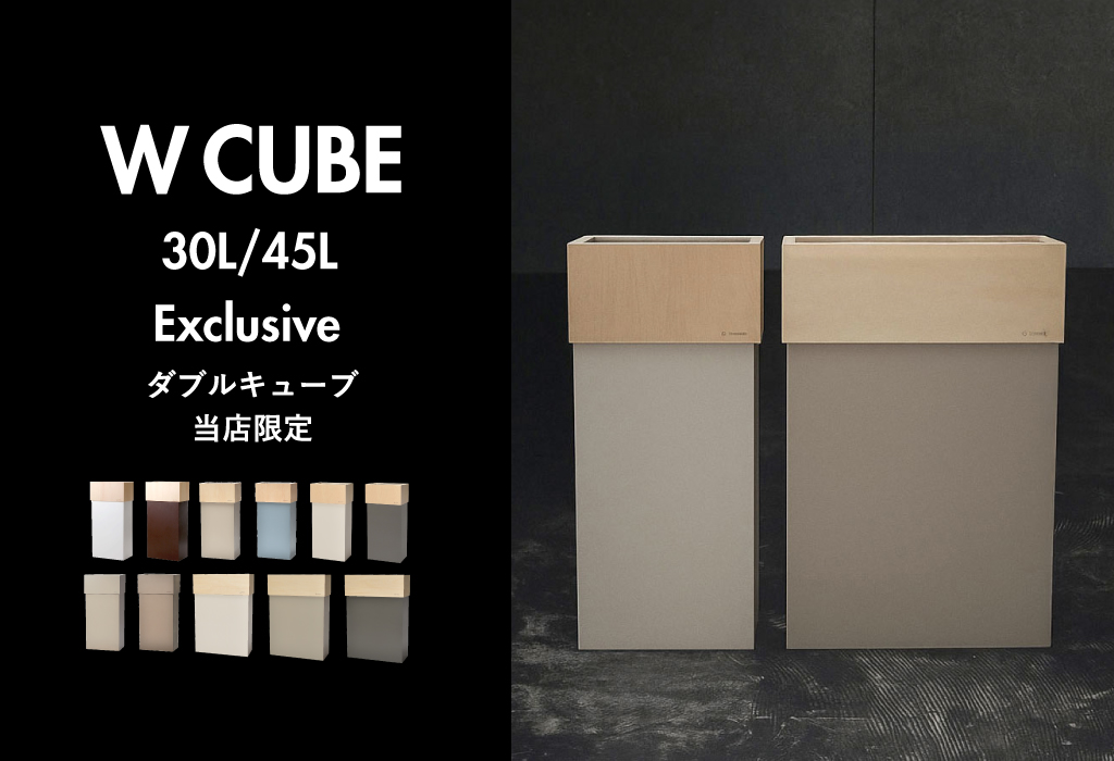 美しい木目と落ち着いたカラーの組み合わせが上品な角型ゴミ箱「W CUBE(ダブルキューブ)」。