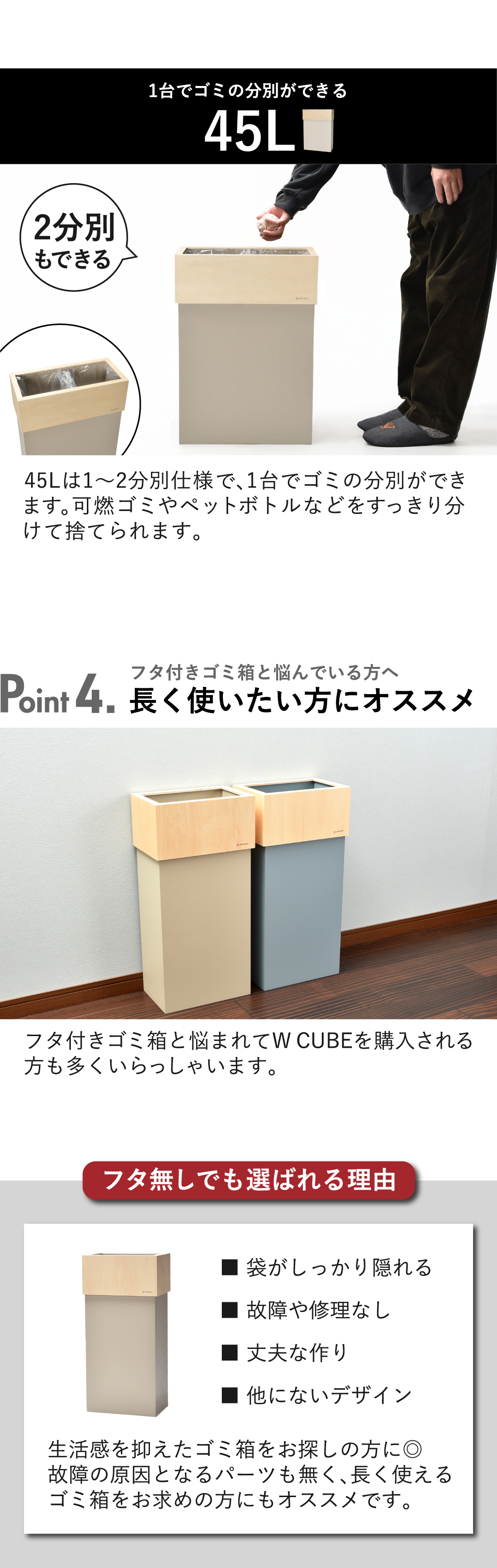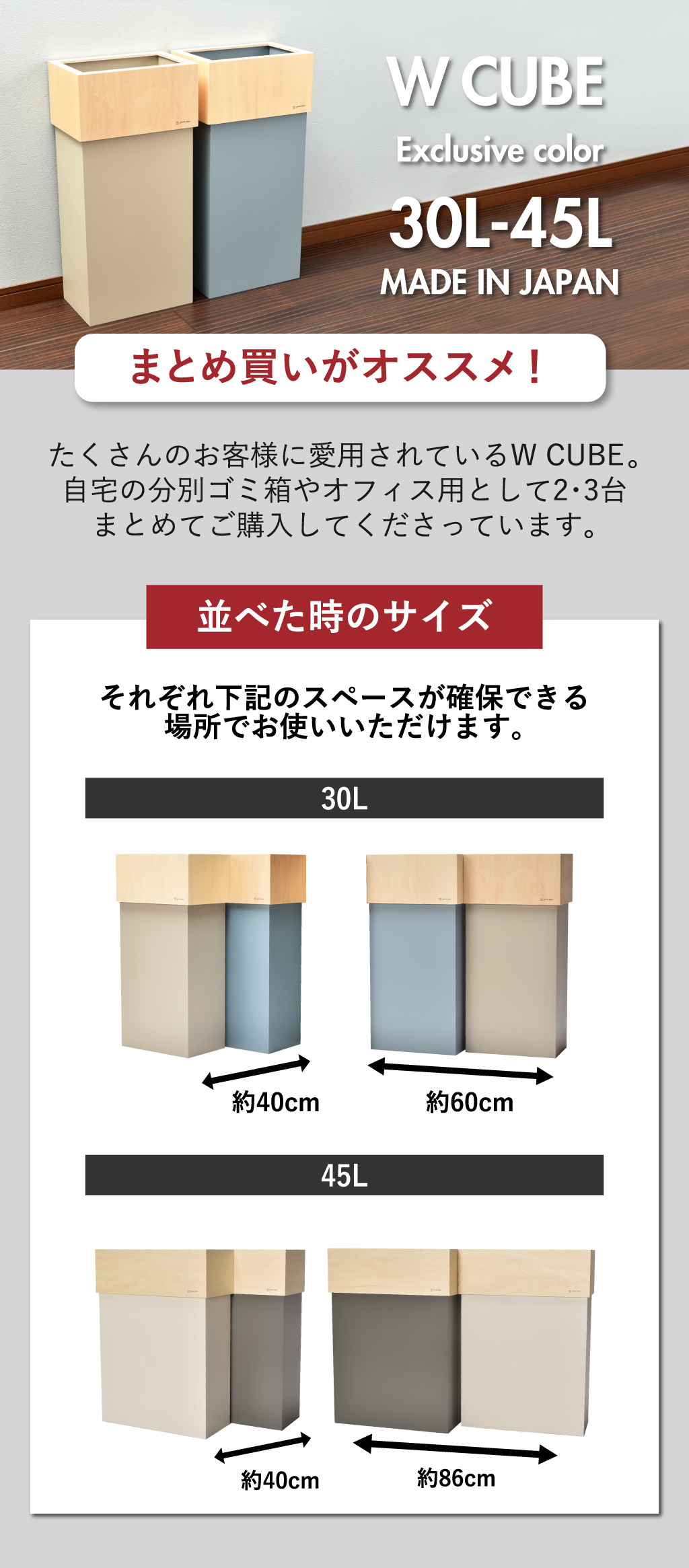 ゴミ箱 45リットル対応 おしゃれ 分別 スリム ダストボックス キッチン用 30リットル リビング 袋が見えない 木製 北欧 日本製 W CUBE 30 ダブルキューブ