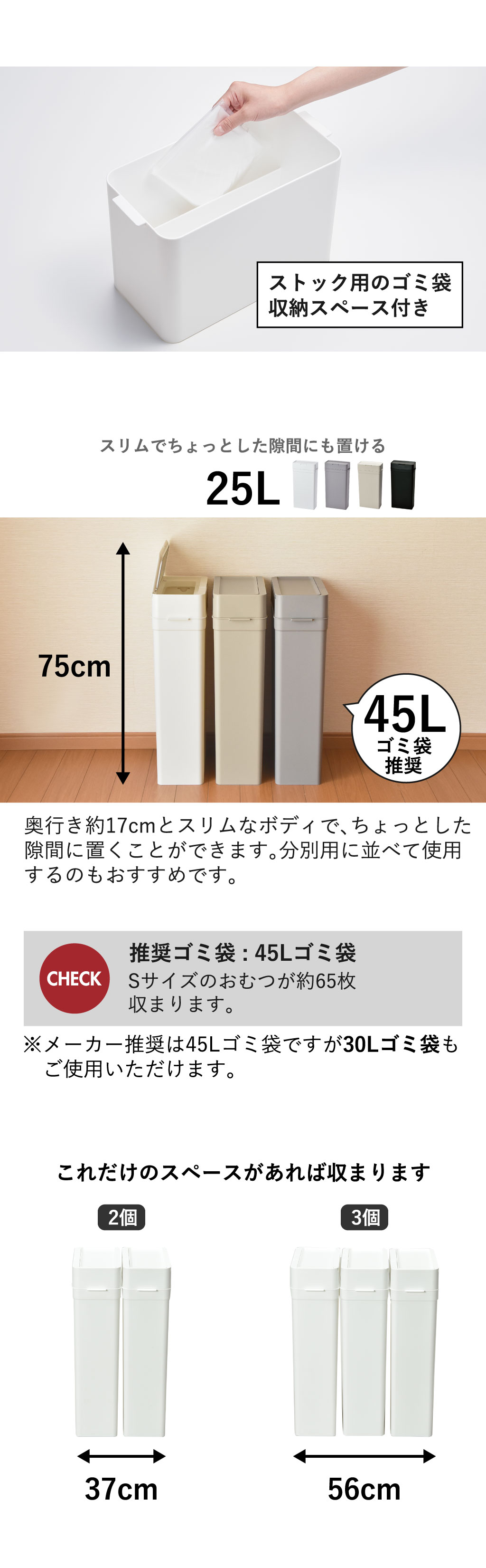 スリムサイズから45リットルまで