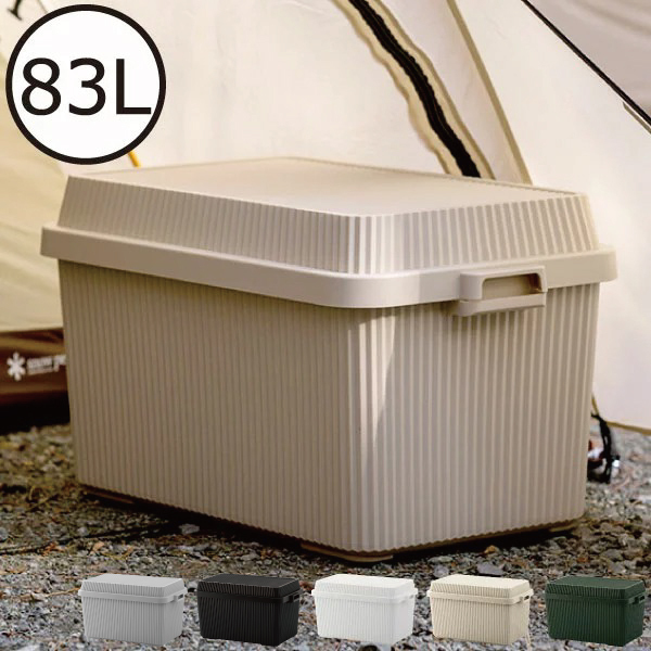 屋外でも屋内でも使用できる大容量のふた付き収納ボックスです。収納ボックス全体に、細かな面をジグザグに連結させた構造体を採用し、耐久性と容量を両立させたデザインとなっています。屋外はもちろん、屋内のインテリアにも馴染むカラーリングとシンプルさが魅力的です。収納ボックスは53(浅型)と83(深型)の2タイプ。用途や収納量に合わせてお好みの容量をお選びいただけます。頑丈なふた付きの収納ボックスなので、収納や運搬はもちろん、ふたの上に荷物を置いたり、イスとしても活用でき、屋外の様々な場面で活躍します。収納ボックスは最大3段までスタッキングが可能。スパイクの凹凸のような構造で安定感を高めています。収納ボックスの耐荷重は約100kg。衝撃に強い樹脂製なので、車のトランクや屋外でもタフに使用できます。ハンドル付きで持ち運びやすく、ふたはロックできるので防水性にも優れています。別売りのインナーボックスを使えば、大容量の収納ボックス内を仕切りながらわかりやすく整理できます。アウトドア用品の収納からご自宅の消耗品、防災用品、おもちゃまで、様々なアイテムの収納におすすめです。