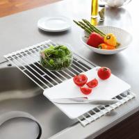 今まで水切りカゴを使っていてかさばるし、お手入れも大変という経験はないでしょうか。折り畳み水切りラックはフラットなデザインで圧迫感がなく、通気性も良いのでお手入れもカンタン。使わないときはくるっと巻けて、引き出しやちょっとした隙間に収納できるので来客時など生活感を隠したいときにも便利。グラスやカトラリーなど少量の食器など、置きたい物に合わせて幅を折り畳めるのでシンクスペースを無駄なく活用できます。調理スペースとしても使用できるので家事効率もUP。蛇口の部分に合わせてフレームを抜き取ることができるので蛇口が邪魔で置けないという心配もありません。どんなキッチンにも合わせやすい2カラー。