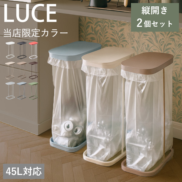「分別ゴミ袋ホルダー LUCE( ルーチェ )」は、フタと3本のスチールフレームで作られた究極のゴミ箱。シンプルな構造なので隙間なく最後までゴミを入れられます。袋がいっぱいになったら、横から引っ張って交換。ゴミ箱の中から袋を取り出す面倒な手間が省けます。毎日使うものだからこそ、使いやすさを追求したシンプルなゴミ箱です。定番の「縦開き」・高さが制限される場所でも使える「横開き」・コンパクトサイズの「スリム」の3種類からお選びいただけます。当店限定の別注カラーと当店オリジナルゴミ箱ステッカーで、お好みのゴミ箱に。