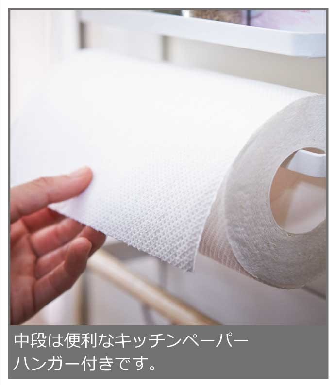 中段にはキッチンペーパーや手拭きタオル・ふきんなどを。