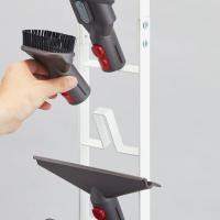 クリーナーツールを一括収納できる便利なラック付き。落下しにくい差し込みタイプで、収納も簡単です。ダイソンの豊富なクリーナーツールを活用しやすくなり、お掃除の効率が上がります。