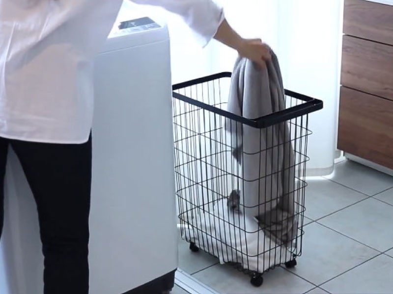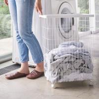バスケットの形がすっきりとした長方形タイプなので、洗濯機の横の狭いスペースにも置くことができ、高さもあるので、脱いだ服から洗った洗濯物もたくさん入れることができます。