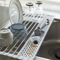 シンクの上に渡して設置する、スリムな水切りラックです。使わないときはクルっと折り畳めるので、シンクまわりでの作業が広々快適になります。キッチンもすっきりとした印象に。