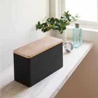 サニタリーアイテムを整理しながら収納できる、おしゃれな収納ケースです。清潔感のあるスチールに木製のフタを組み合わせた北欧風のデザイン。上品な中にぬくもりを感じる、様々な空間に馴染むアイテムです。フタが付いているので、生理用品はもちろん、トイレ小物やゴミ袋などを目隠ししながら美しく収納できます。洗面所で衛生用品の収納やコスメケースとして活用するのもおすすめです。ケース内部には、細かい小物の収納に便利な仕切り付き。丈夫なスチール製です。