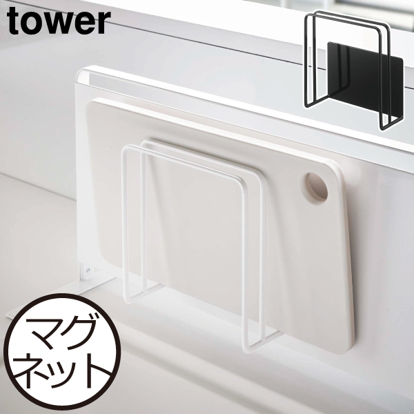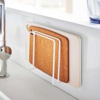 マグネットがくっつく平らな面に、気軽に設置できるまな板スタンド。まな板を2枚すっきり収納できて便利です。モノトーンのシンプルなデザインで、様々なテイストのキッチンに馴染みます。磁石での取り付けなので、壁に穴を開けずに収納スペースを増やすことができます。