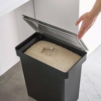 お米を密閉して保存できるおしゃれな米びつです。様々なインテリアに馴染む、モノトーンのシンプルなデザイン。フタにはパッキン付きで、カチッと閉めるだけでしっかり密閉できます。お米を湿気や酸化から守ってくれるので安心です。容量は約20kgと大容量で、約10kgの米袋は袋ごと収納できます。スリムなのでキッチンの隙間に置くことができて便利です。横開きのフタは開けても高さが出ず、カウンター下に設置しやすくなっています。キャスター付きでお掃除の際の移動もスムーズ。パーツは分解して丸洗いできるので、お手入れも簡単です。ペット用のドライフードなどの保存容器として使用しても◎。