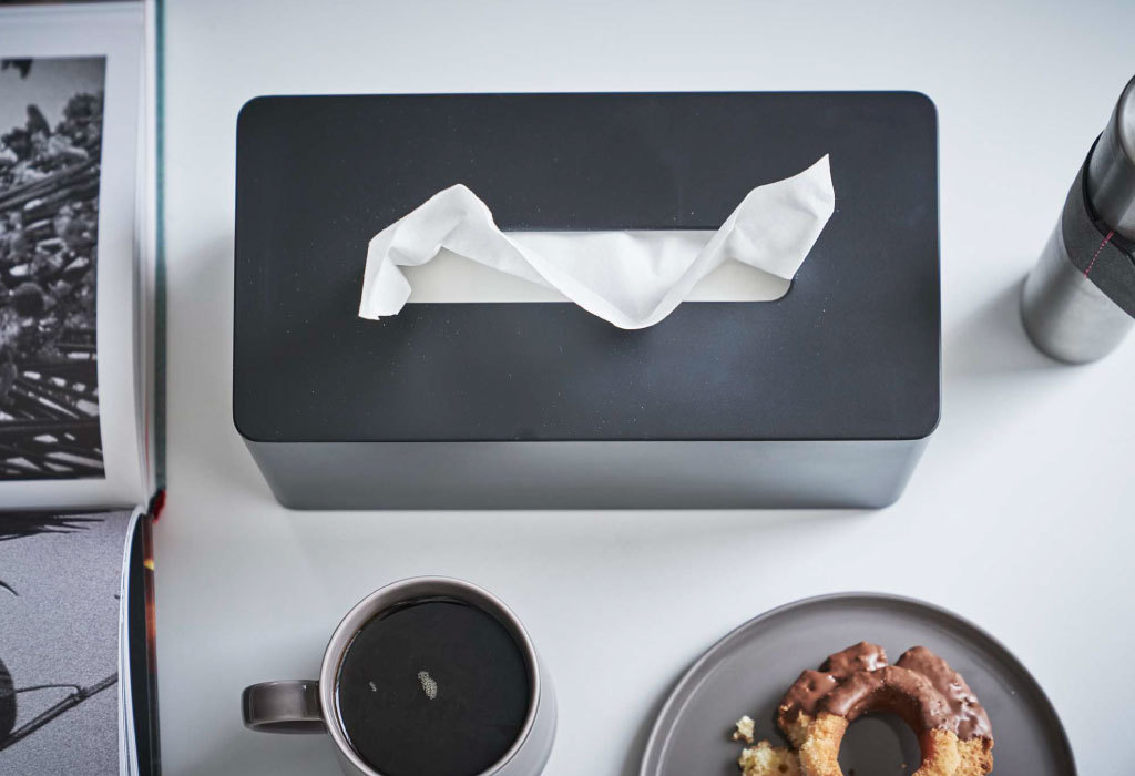 保湿タイプや大容量タイプなどの高さがあるティッシュボックスも収納可能。また、薄型のティッシュボックスであれば、ストック分も重ねてセットできます。(※約高さ9.5cmまで対応)