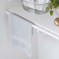 棚板の前面にはハンガーバーが付いています。洗濯機上ではタオルやハンガーを掛けて、トイレではお掃除スプレーを引っ掛けて活用できて便利です。付属のフックを使えば小物も収納できます。