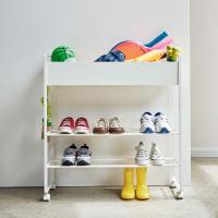 ごちゃつきがちな玄関周りをすっきりさせてくれる、玄関収納ラックです。置き場に困るお子様の遊具や部活道具を、ひとまとめに収納できます。約奥行き22cmとスリムなフォルムで、玄関に置いても場所をとりません。キャスターが付いているから、掃除の際の移動も楽々。ラケットやバットなどの長い物や、小さいボールやグローブなどは上のカゴに。靴や大きいボールは下のラック部分に、それぞれ仕分けて収納することができます。リビングに置けば、ガーデニング用品と一緒に収納できる、プランタースタンドとしても活躍。色は、部屋の雰囲気に合わせて、ホワイトとブラックの2色からお選びいただけます。