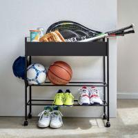 上のカゴには、ごちゃつくお子様の遊具や部活道具などをひとまとめに収納可能。ラケットやバットなどの長い物から、小さめのボールやグローブなどの小物まで、様々な物を収納できます。また、通学時必ず通る玄関に置いてあることで、お子様の忘れ物を減らすことができて安心です。