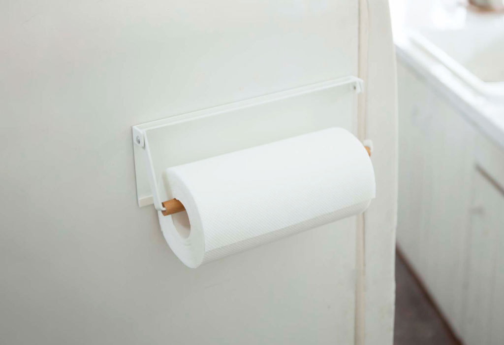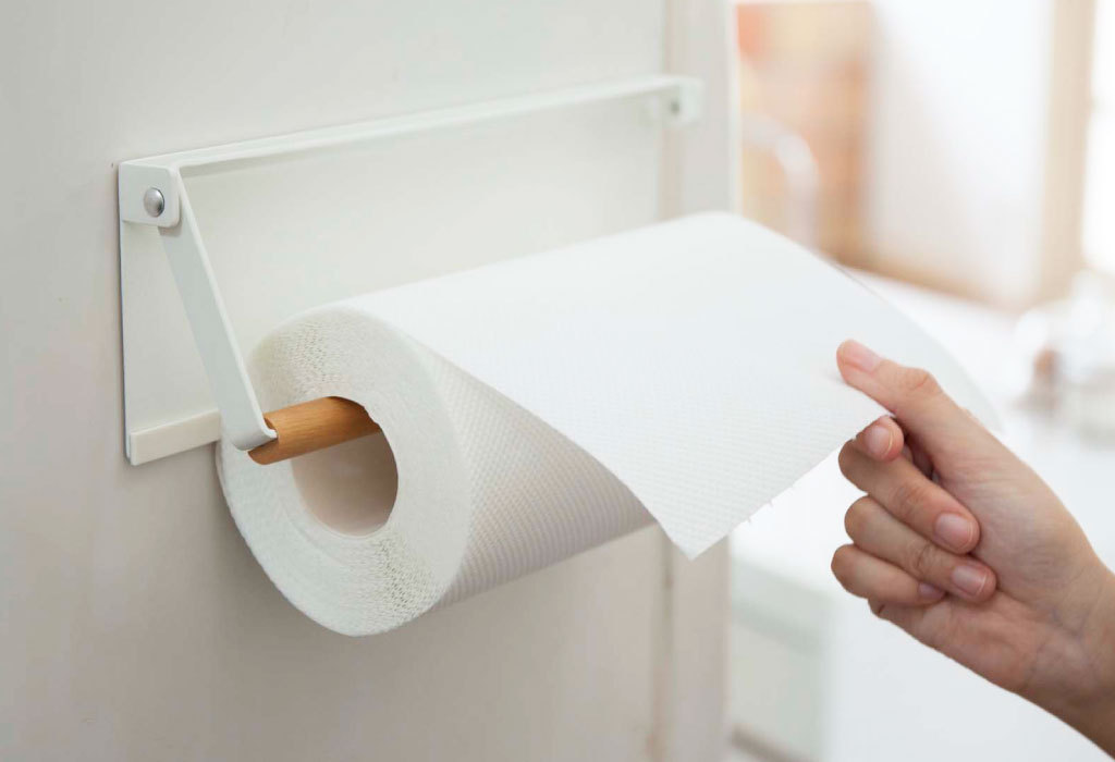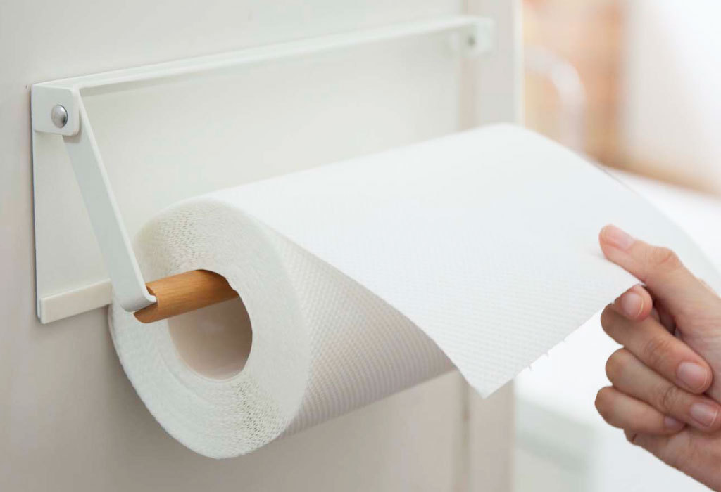 キッチンペーパーロールを横からスッと入れるだけで簡単にセット。面倒な取り替えもスムーズに行うことができます。