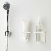 お風呂で使うチューブやボトルを、浮かせて収納できるバスラックです。収納部が2つあるダブルタイプで、倒れやすい洗顔フォームやクレンジングオイルを、ひとまとめに立てて収納。ごちゃつくバスルームがすっきりします。