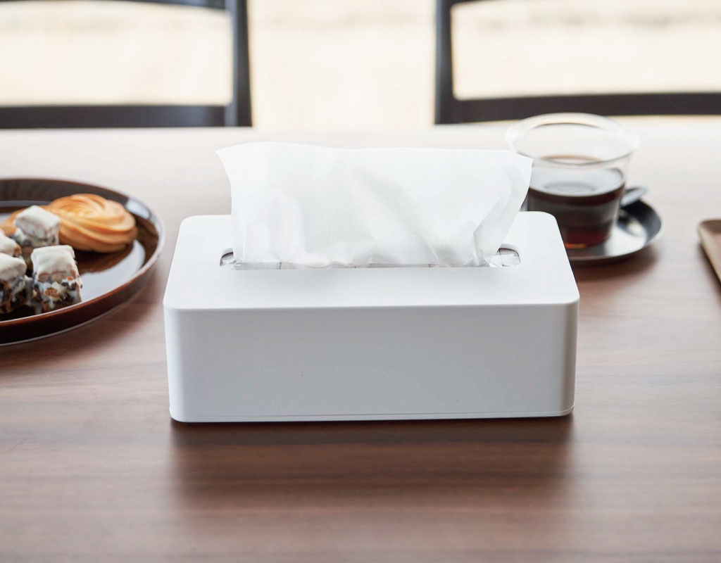 ティッシュをパッケージごと収納できるシンプルなティッシュケースです。角型のスタンダードなデザインで、詰め替えもスムーズにできます。