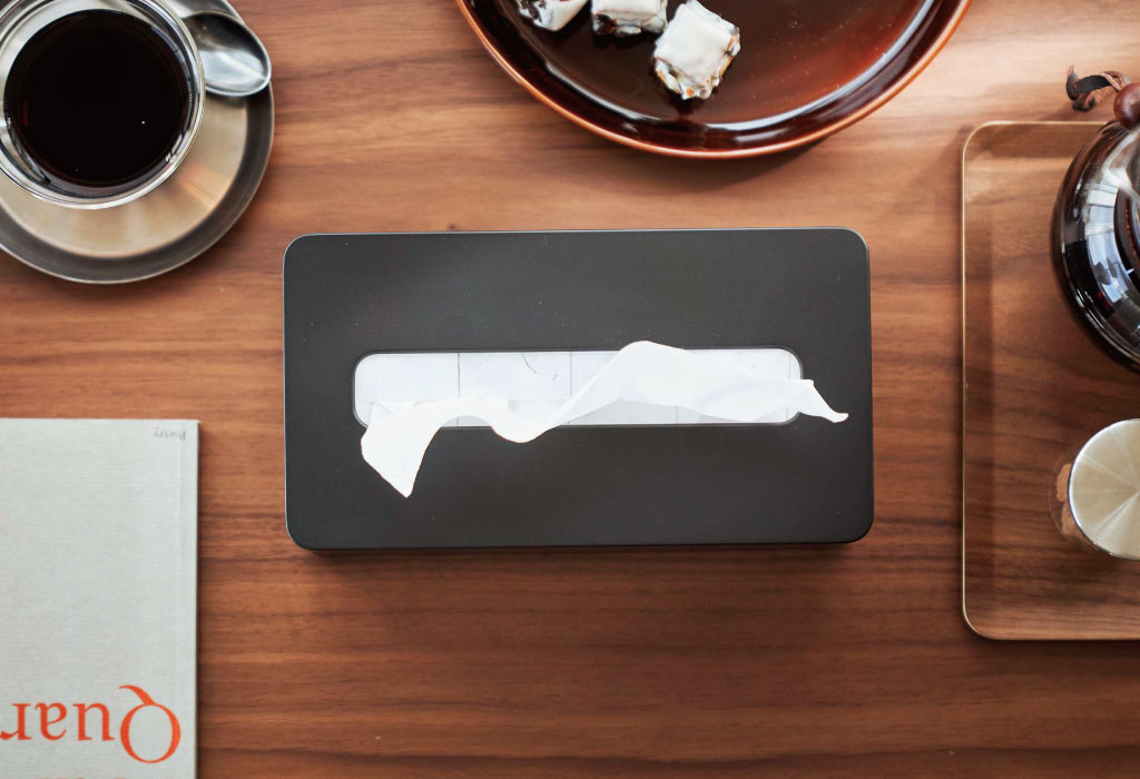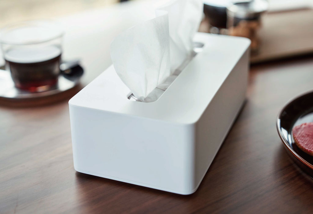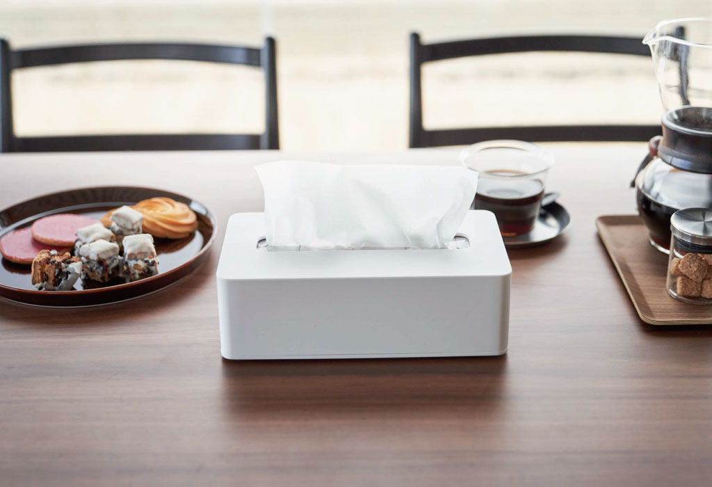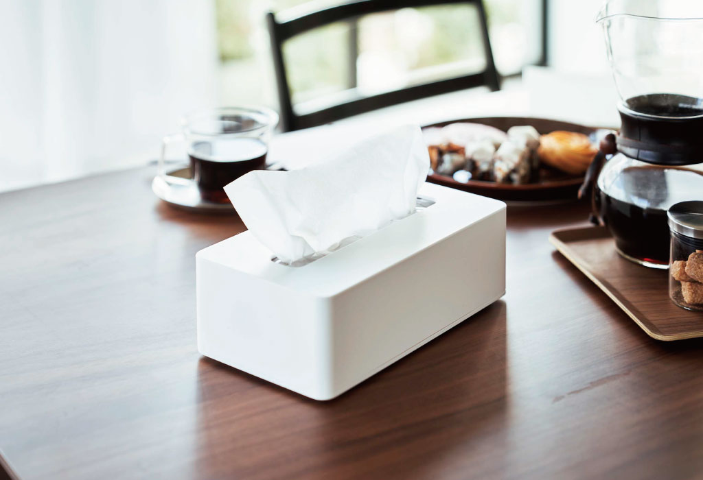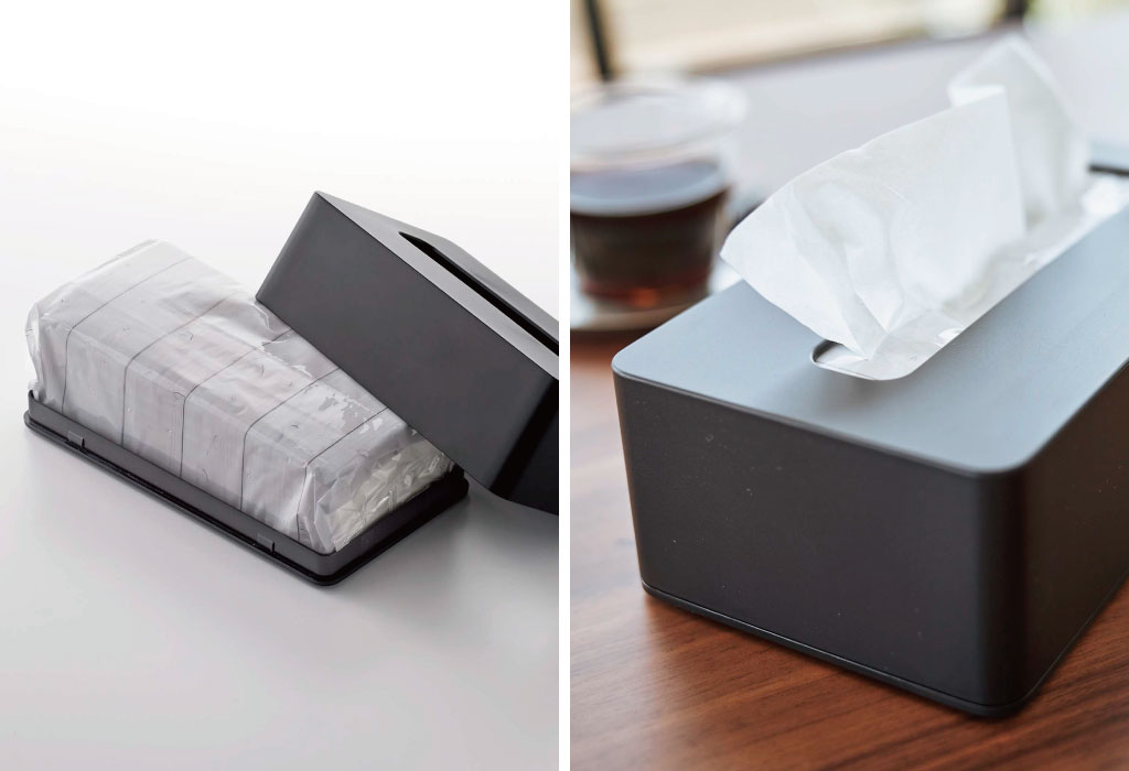 そのまま置くとどうしても生活感が出てしまうティッシュ。おしゃれなケースに入れることでパッケージが見えなくなり、すっきりとした印象に。