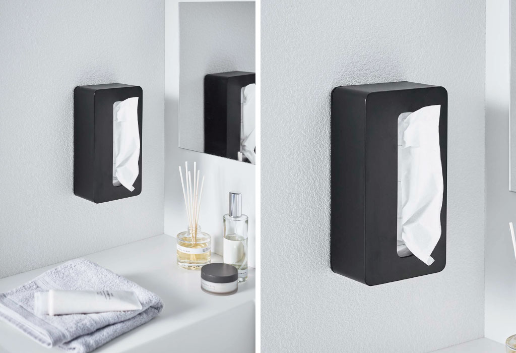 こちらのティッシュケースは壁に取り付けてもご使用いただけます。付属の木ネジを使ってお好みの場所に固定してください。スリムなデザインなので省スペースに設置できます。
