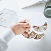 ネイルパーツやアクセサリーパーツなど、細々としたパーツ類を仕分けて収納するのも便利です。パーツが混ざらず、整理しながら美しく収納できます。