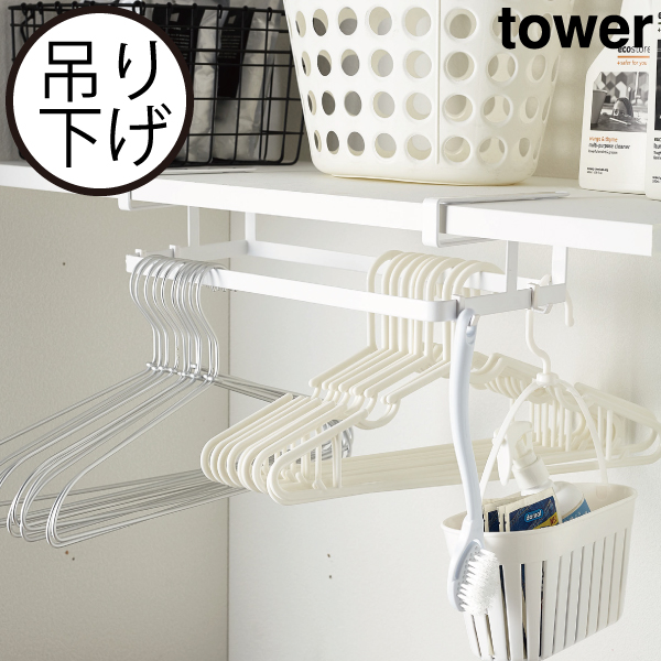 脱衣所や洗面所の棚下に取り付けられる、おしゃれな収納ホルダーです。物干しハンガーや洗濯小物などを引っ掛けて、省スペースに収納できます。