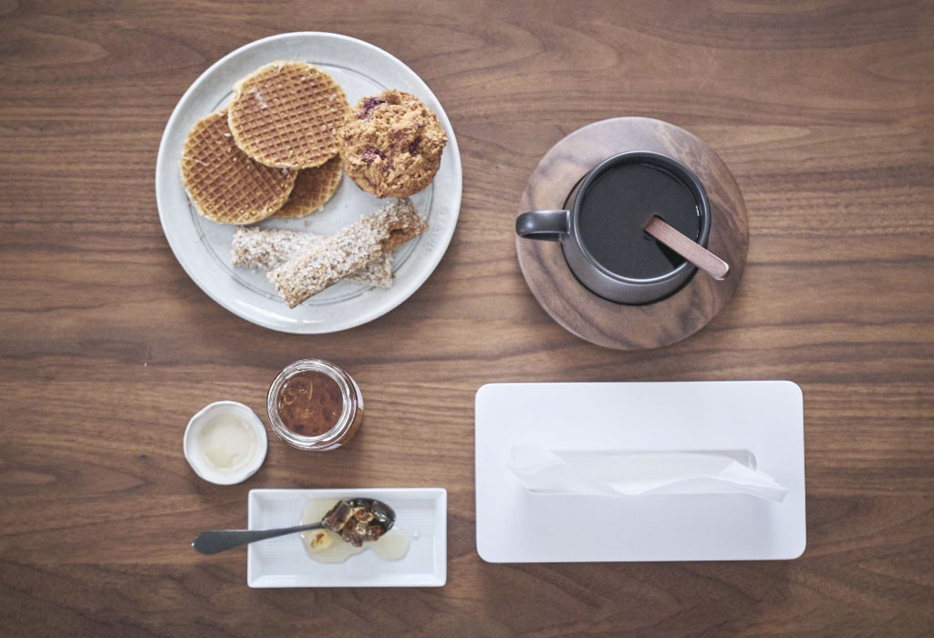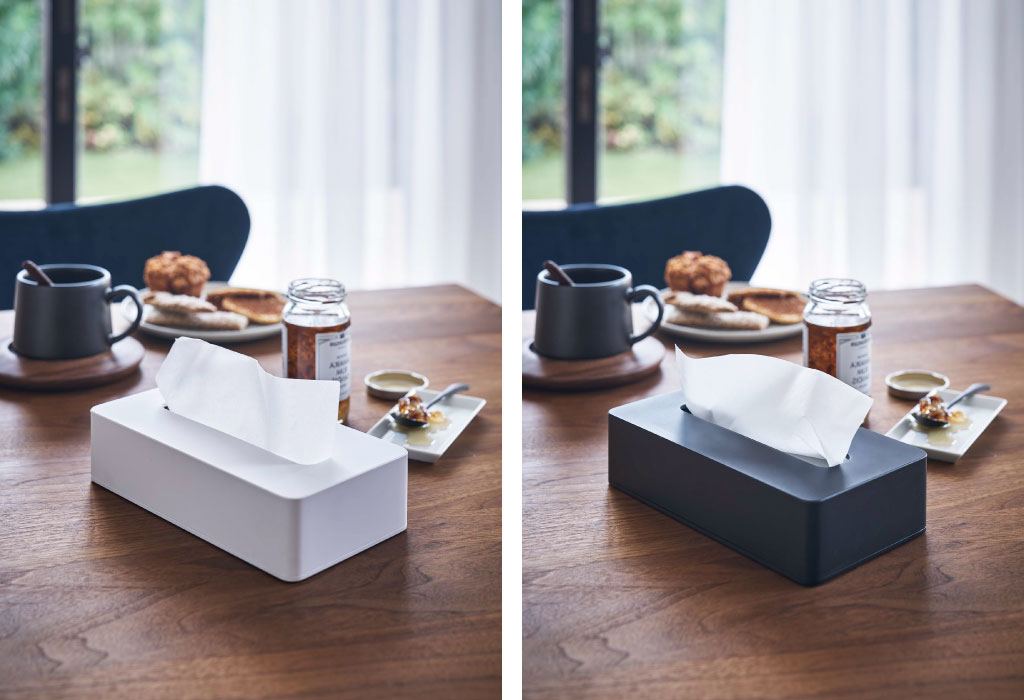 洗練されたシンプルなデザインなので、様々な空間に溶け込み、インテリアの邪魔をしません。マットな色味と丸みのある角が、柔らかい雰囲気を演出。色は、ホワイトとブラックの2色からお選びいただけます。