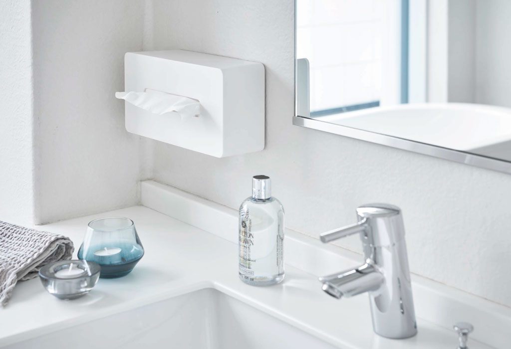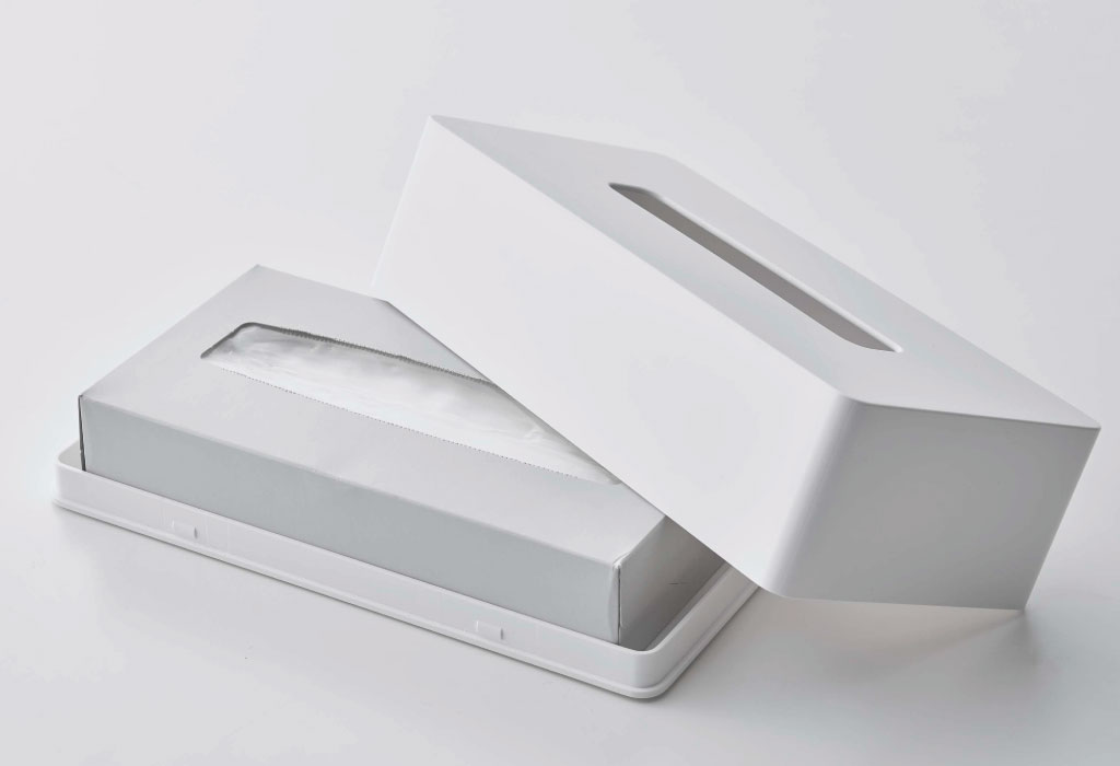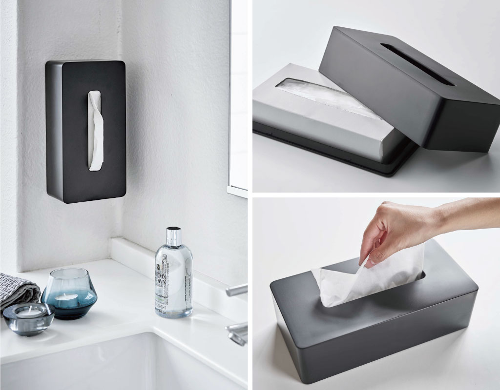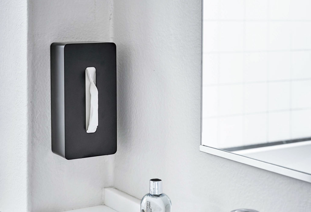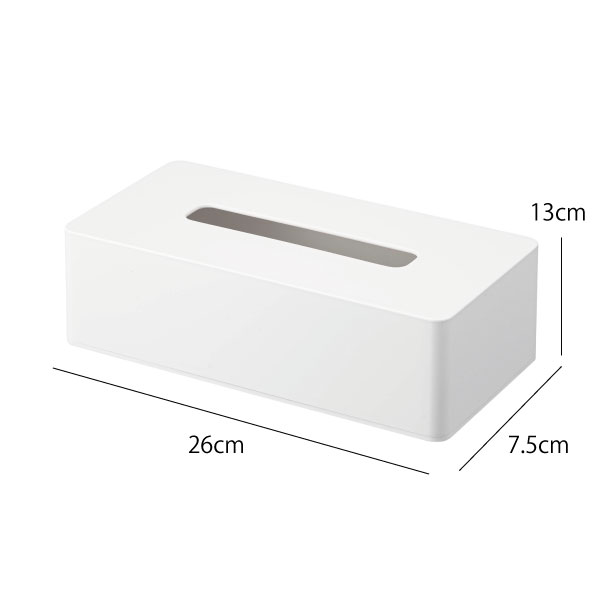 生活感のない洗練された空間を演出するおしゃれなティッシュケースです。様々なインテリアに馴染むモノトーンのシンプルなデザイン。一般的なティッシュボックスを箱ごと収納できるので、見た目もすっきり整います。コンパクトで卓上でも場所を取らずに設置できます。使いたいときにティッシュをスムーズに手に取れて便利です。リビングダイニングやサニタリー、寝室など、置き場所を選ばず、どんなシーンにも自然と溶け込みます。木ネジ付きで壁面に取り付けて使用してもOK。浮かせて収納できるので、水まわりで使用するのもおすすめです。