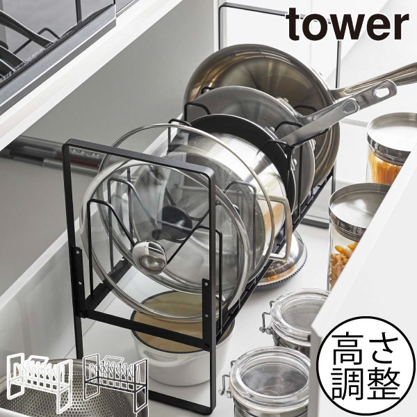 シンク下高さ調整鍋蓋&フライパン収納ラック 2段 タワー
