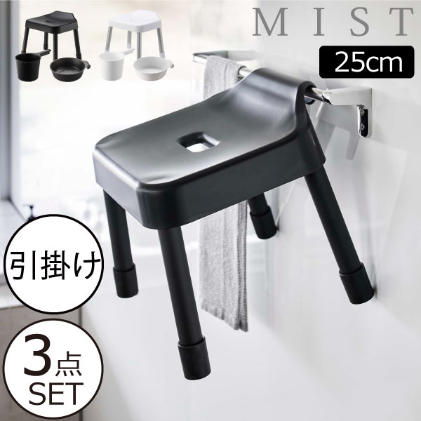 お風呂椅子 セット 25cm おしゃれ 風呂椅子 浮かせる 山崎実業 引っ掛け風呂イス ミスト SH25+マグネット&引っ掛け湯おけ+マグネット手おけ MIST
